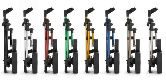 Bijzondere en zeer plat opvouwbare elektrische golftrolley voorzien van Touch-handgreep, bergafwaarts assistent, cruis-control functie, snelheidsgeheugen en 60-70% parkeerrem.